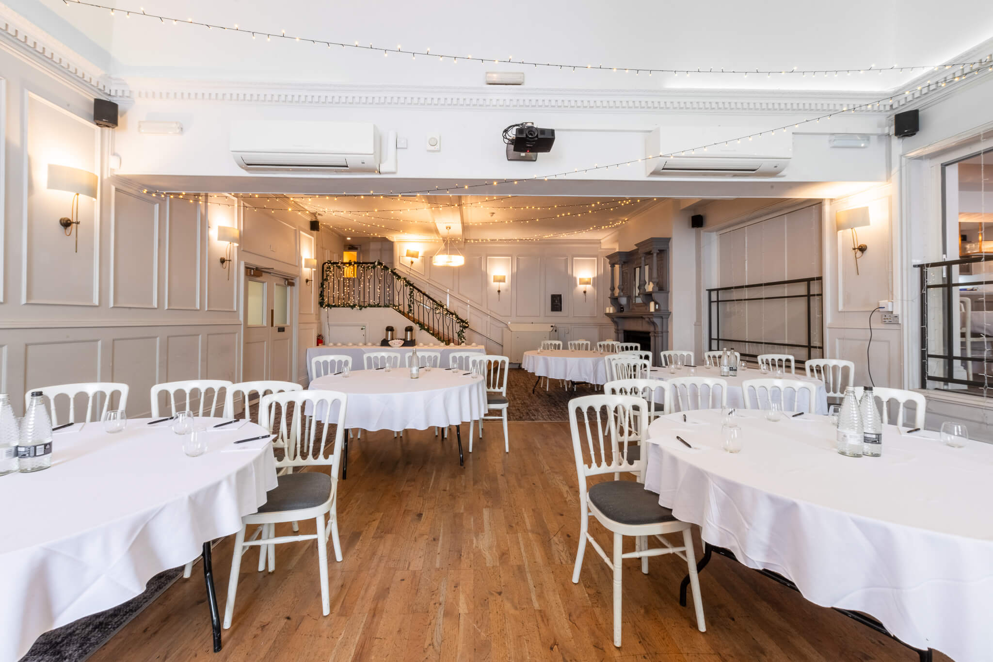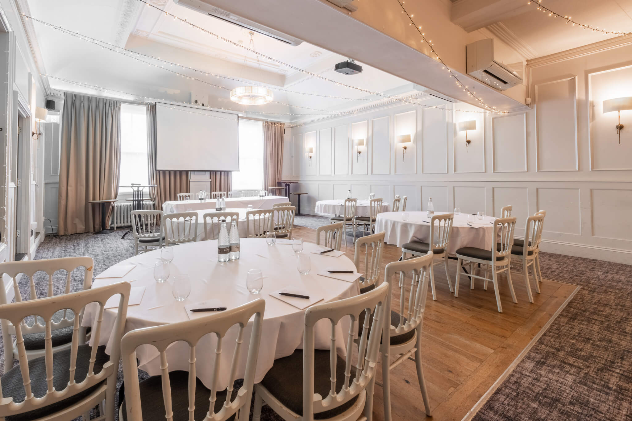 A grand, flexible space with high ceilings and panelled walls, adjoining room and bar the Victoria allows flexibility for meetings and conferences as well as events and social gatherings